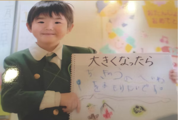 ​「大人になったら地球の平和を守りたい」との言葉を残し、小児ネフローゼ症候群(難病指定) により8歳で他界した創業者の長男。その意思を継ぎ、世の中の笑顔作りを使命とした株式会社グローイングリッチが設立されました。会社名は彼の名前からとったものです。